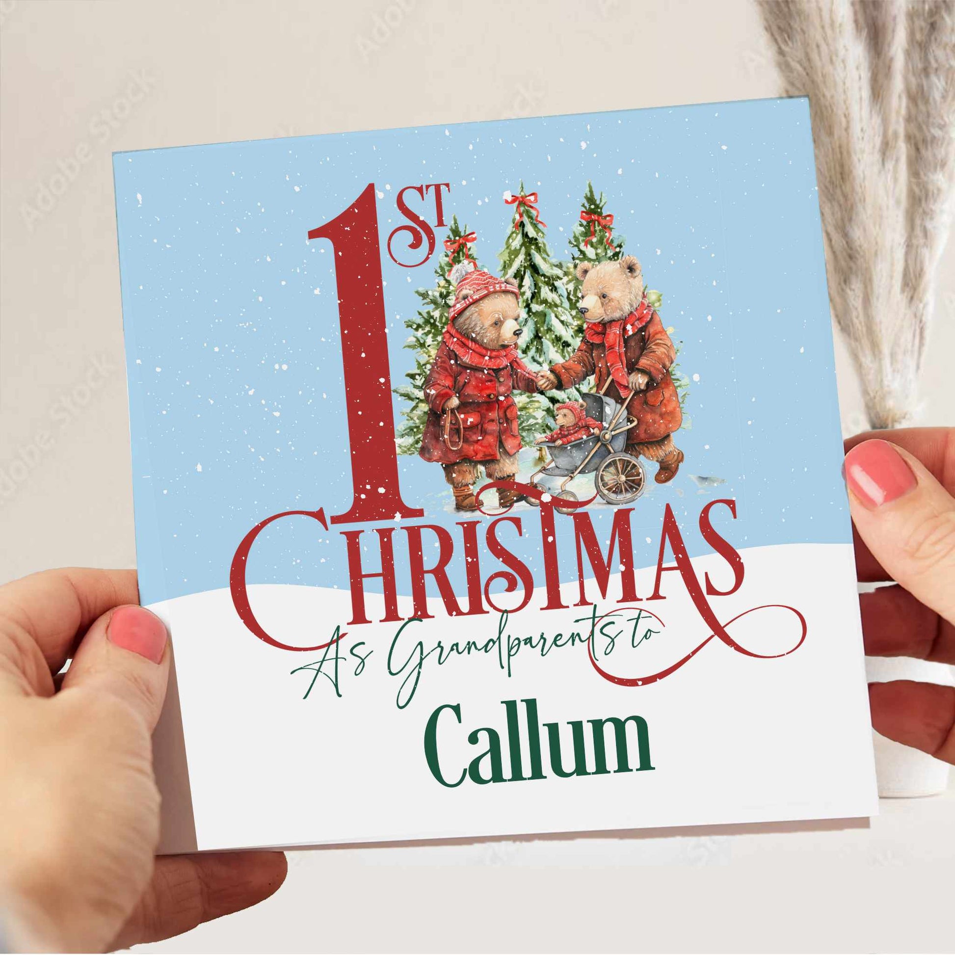 1st Christmas Card as Grandparents Gran, Grandad and Baby Bear