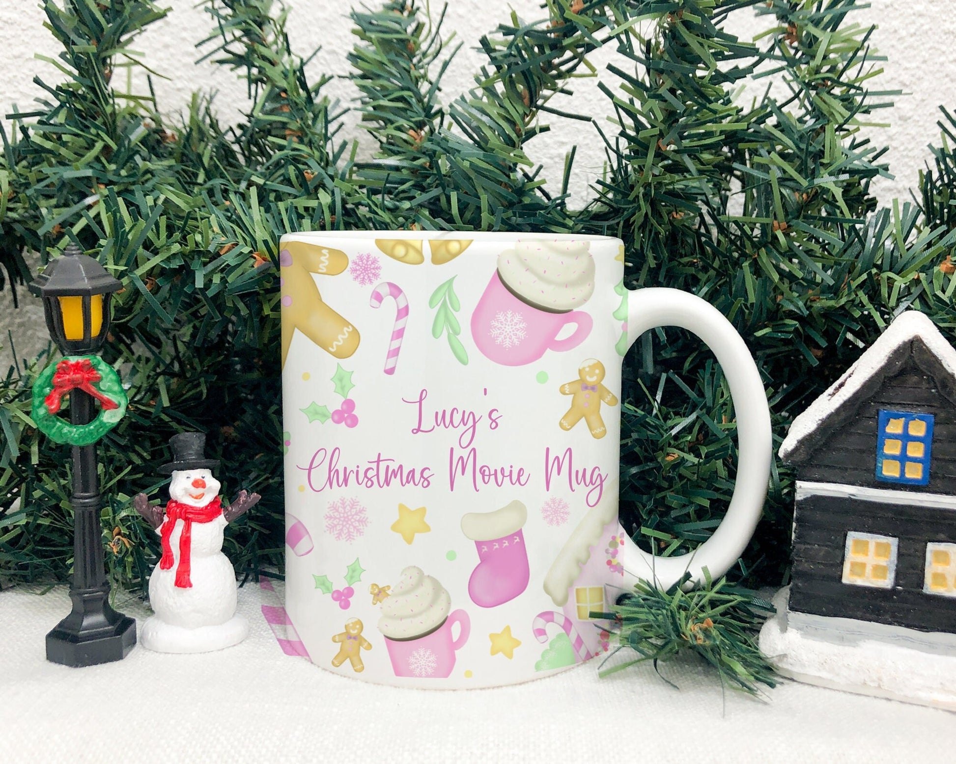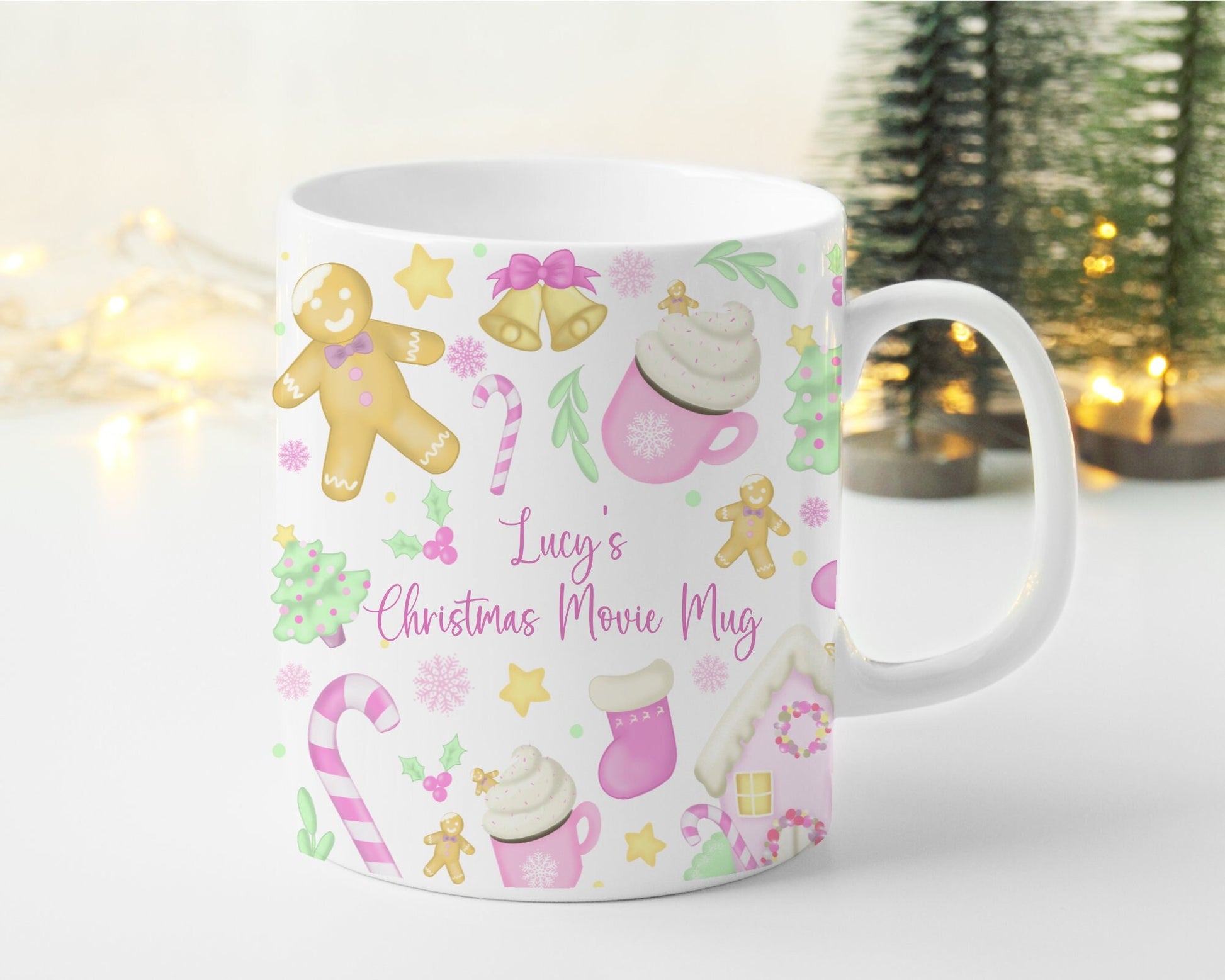 Christmas Mug Personalised Gingerbread Red or Pink Hot Chocolate, Christmas Eve Box Stocking Filler
