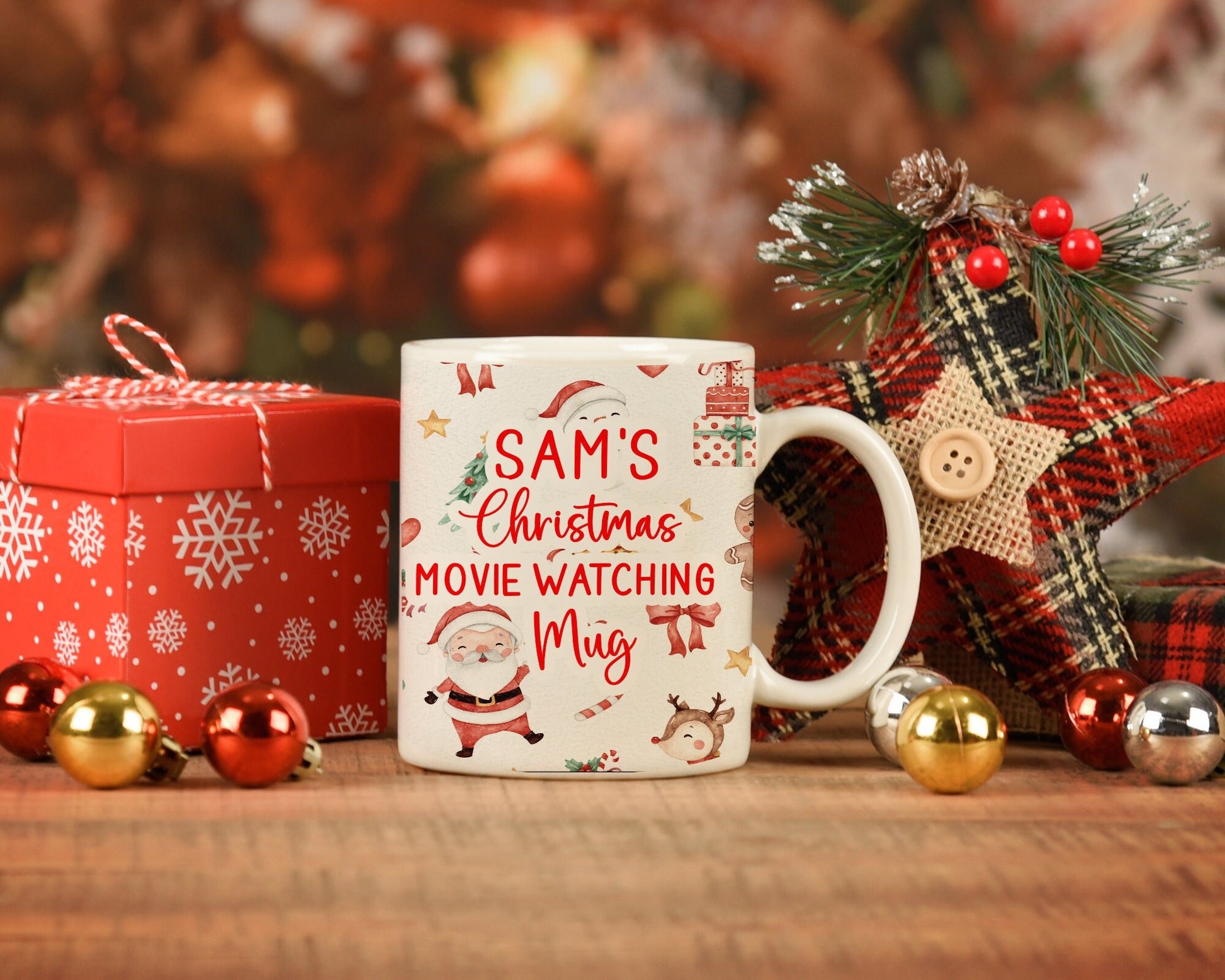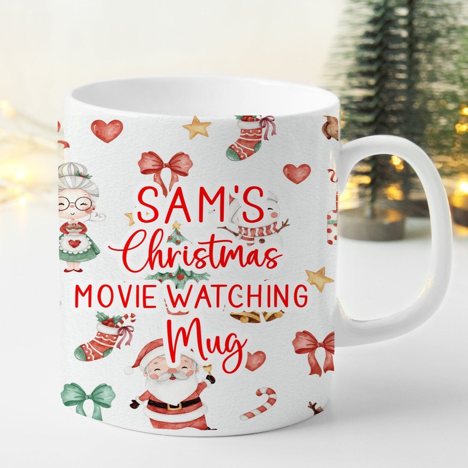 Personalised christmas mug, perfect for a christmas gift, stocking filler or just simply to enjoy a cosy hot chocolate.