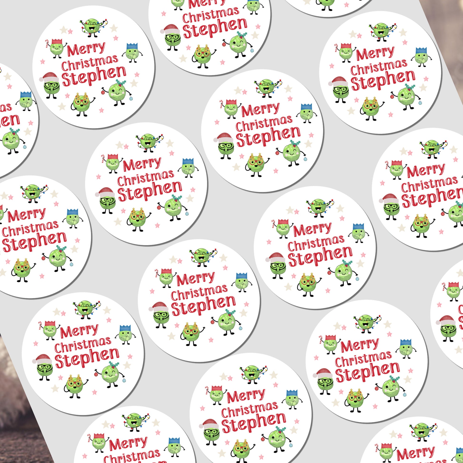 Christmas Stickers for Children's Gift Wrapping, Personalised With Name - Brussels Sprouts