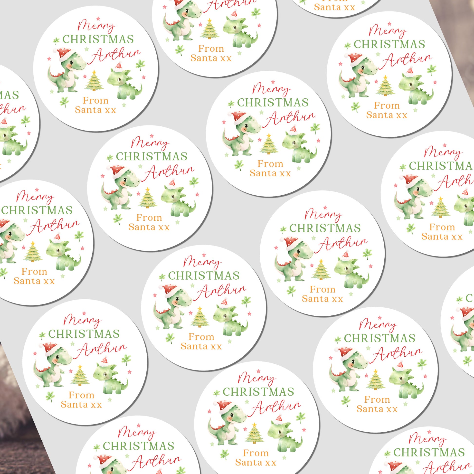 Christmas Stickers for Children's Gift Wrapping, Personalised With Name - Dinosaurs