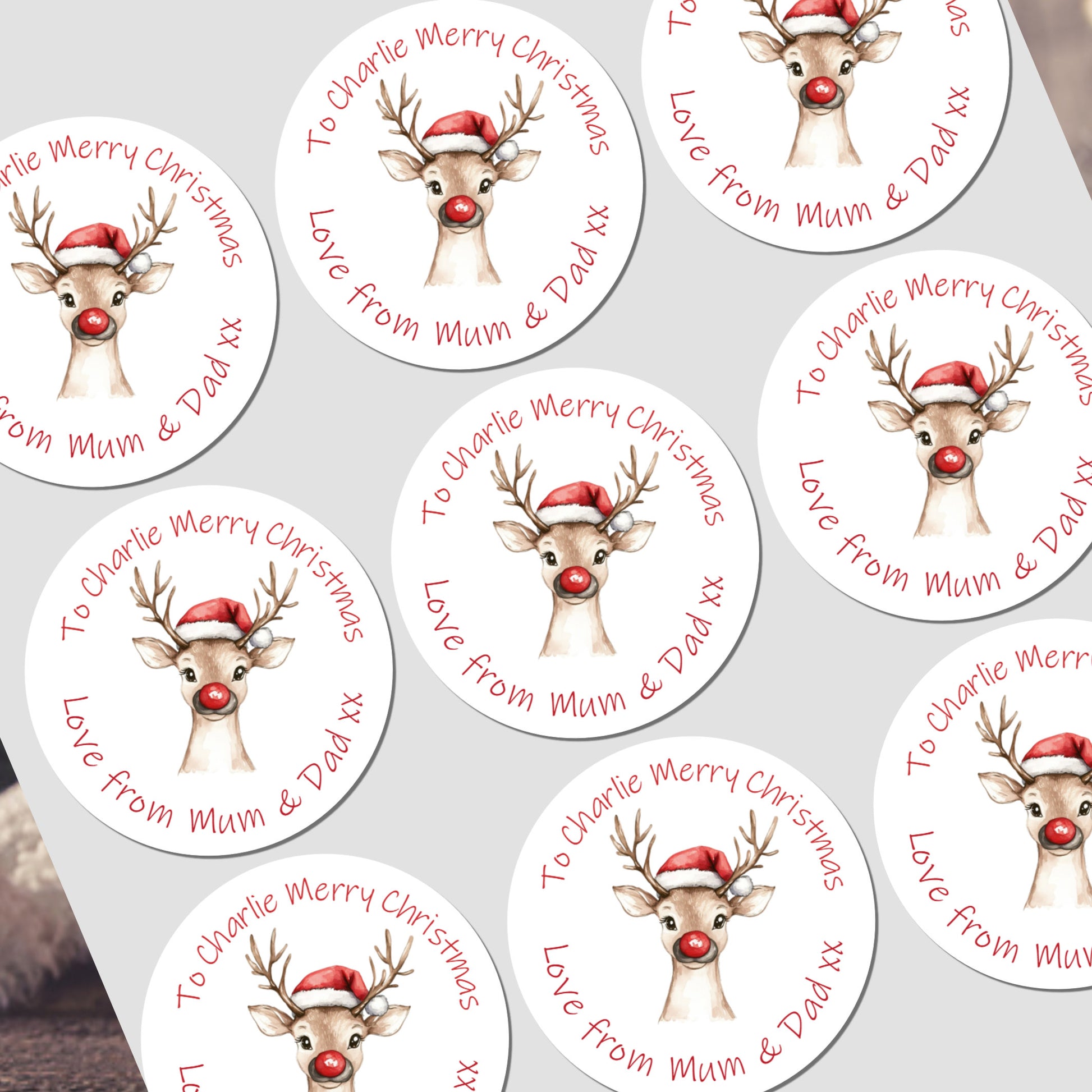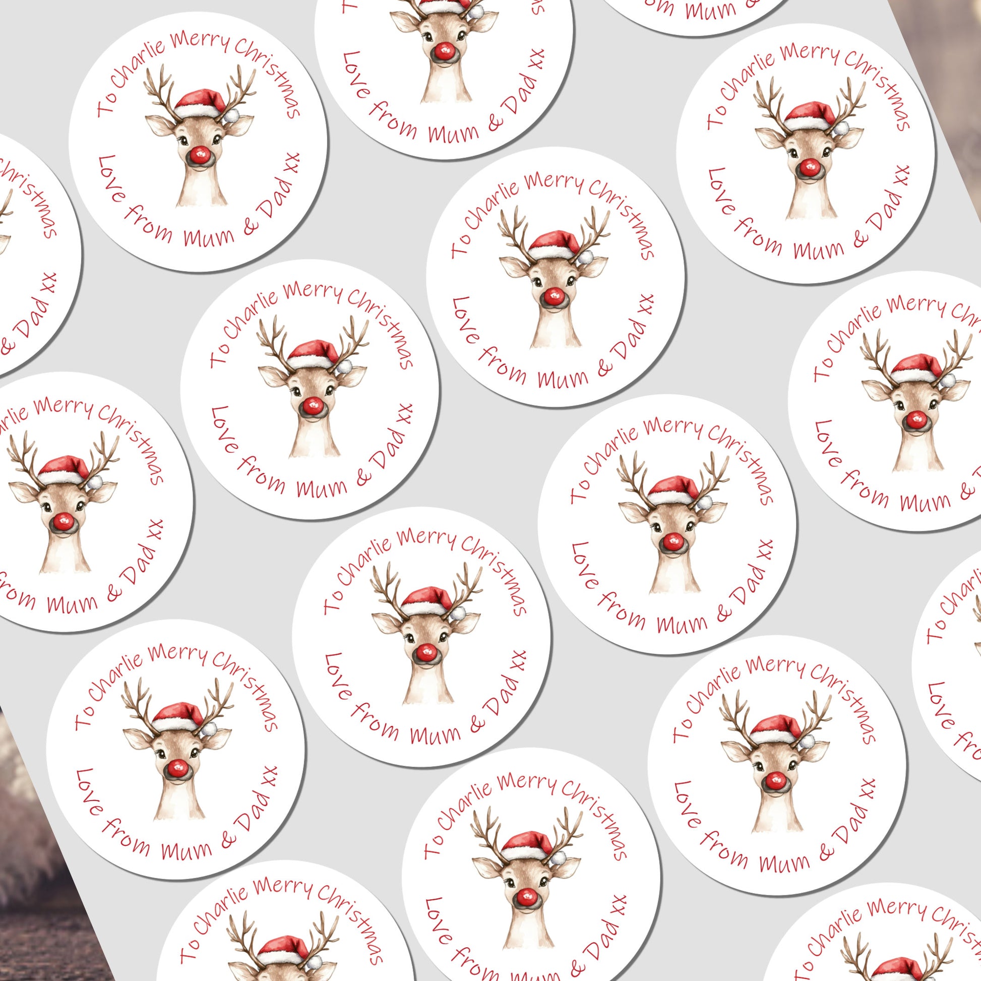 Christmas Stickers for Children's Gift Wrapping, Personalised With Name - Reindeer