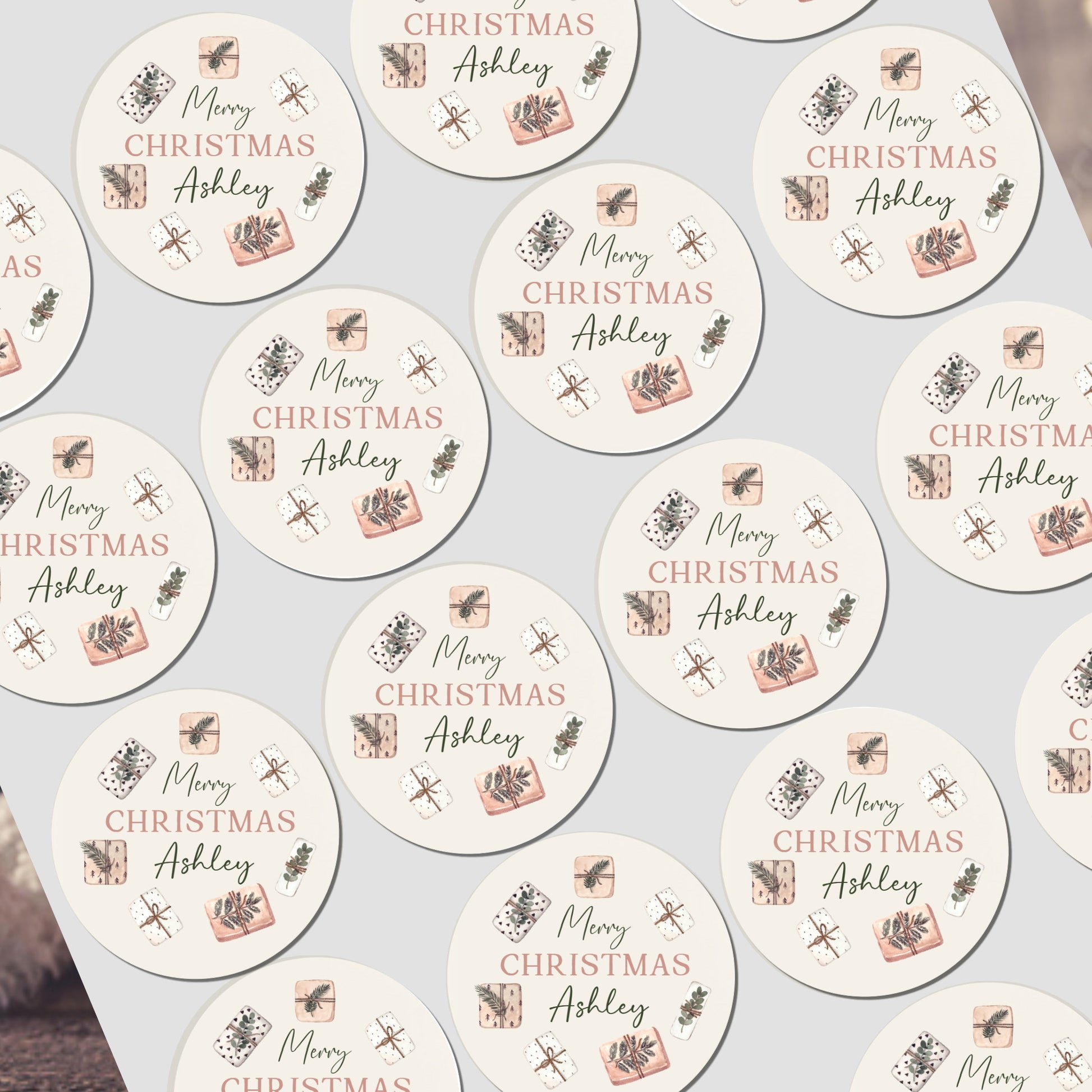 Christmas Stickers for Gift Wrapping, Personalised With Name - Watercolour Parcels