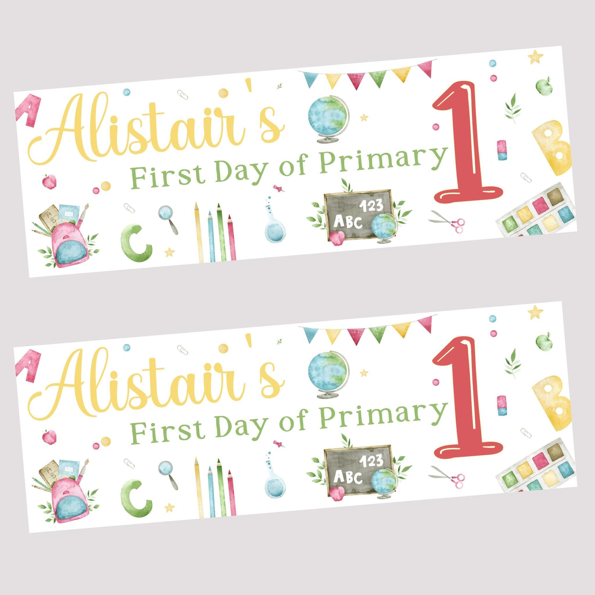 Make your special celebration even more memorable with our Personalised First Day of School Banners! Perfect for primary school age children, Well done event, Go Smash it!