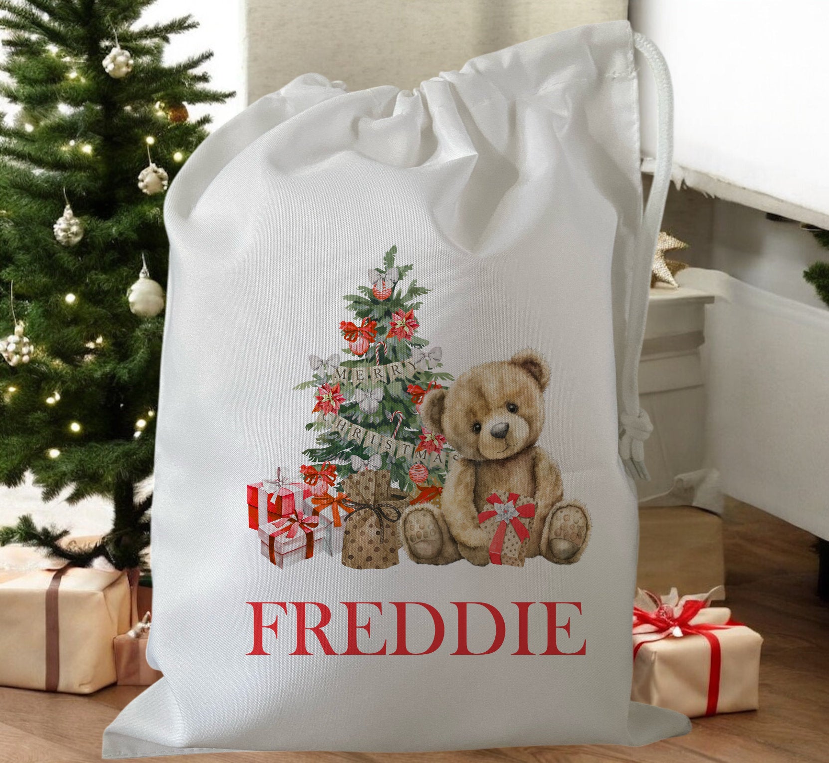 Make this Christmas Eve extra special with a Personalised Christmas Eve Treat Bag from Blossom Lane Cards! This cute bag is the perfect way to add a personal touch to your festive celebrations. Made from white polyester fabric, this treat bag is perfect size to hold you childs pjs, perhaps a hot chocolate, colouring book. The bag has a drawstring closure.