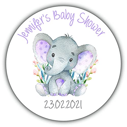 Personalised Baby Shower Party Stickers for Elephant Lilac