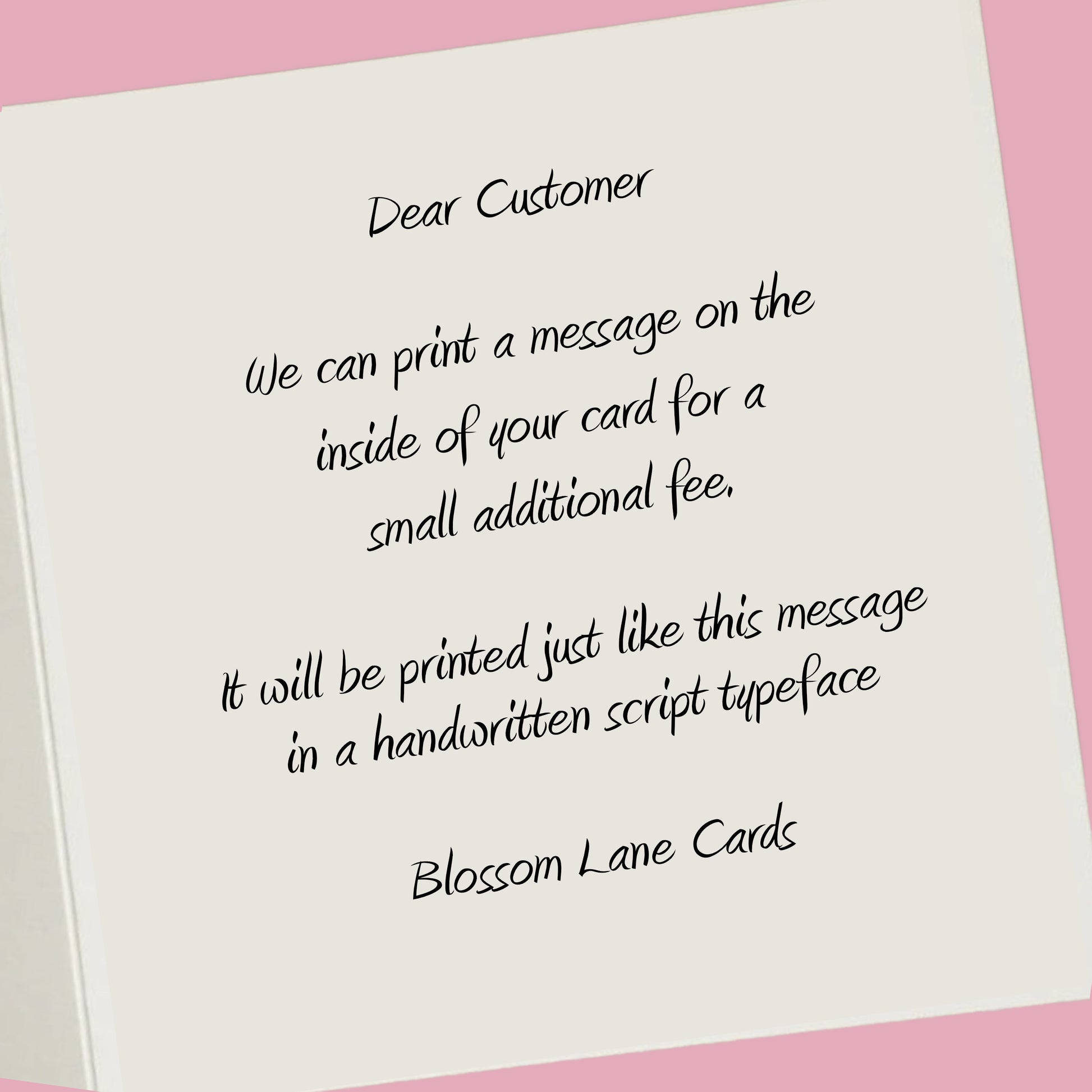 •Add a personalised message of your choice inside, we will lay out as best fit in the font shown.