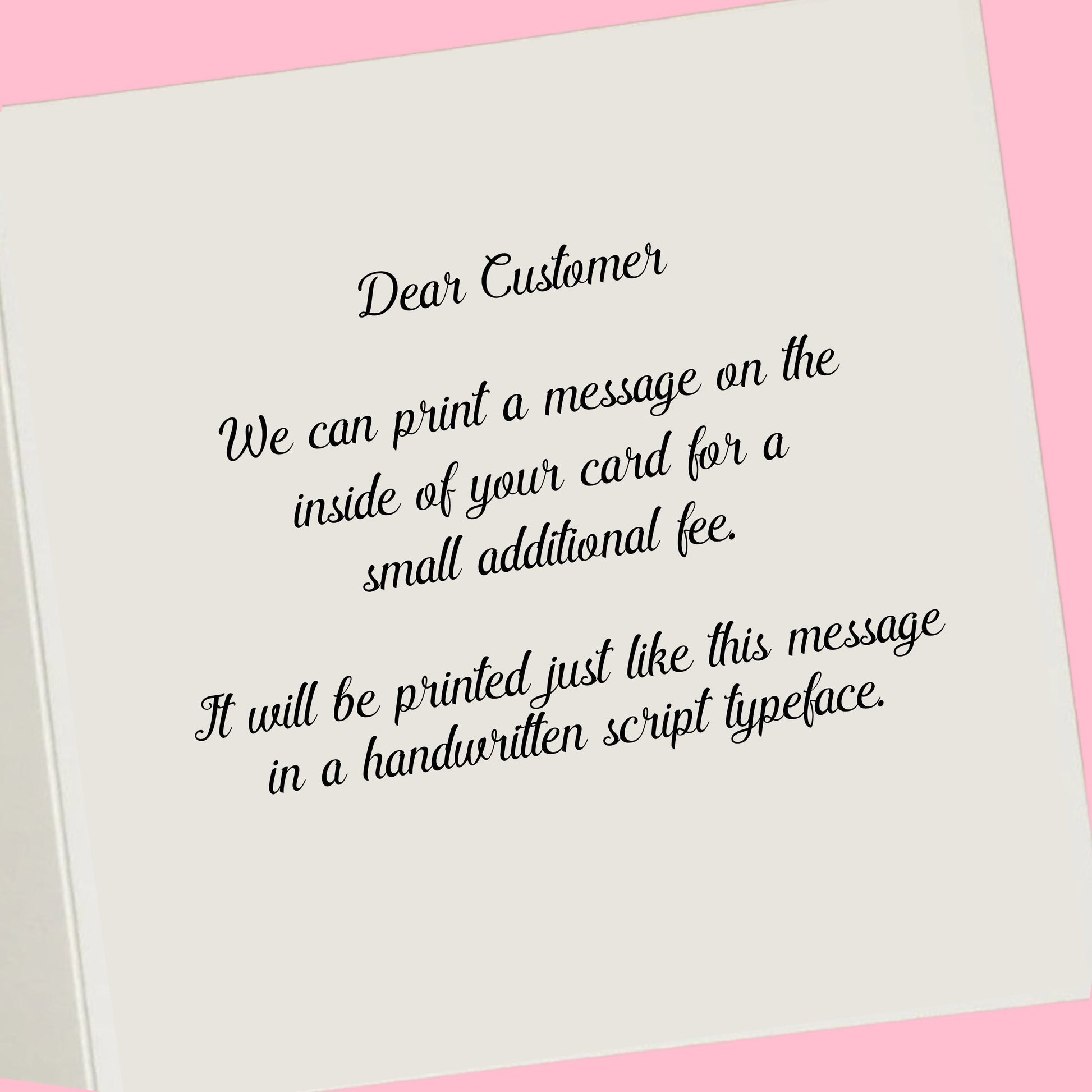 - Add a personalised message of your choice inside, we will lay out as best fit in the font shown.
