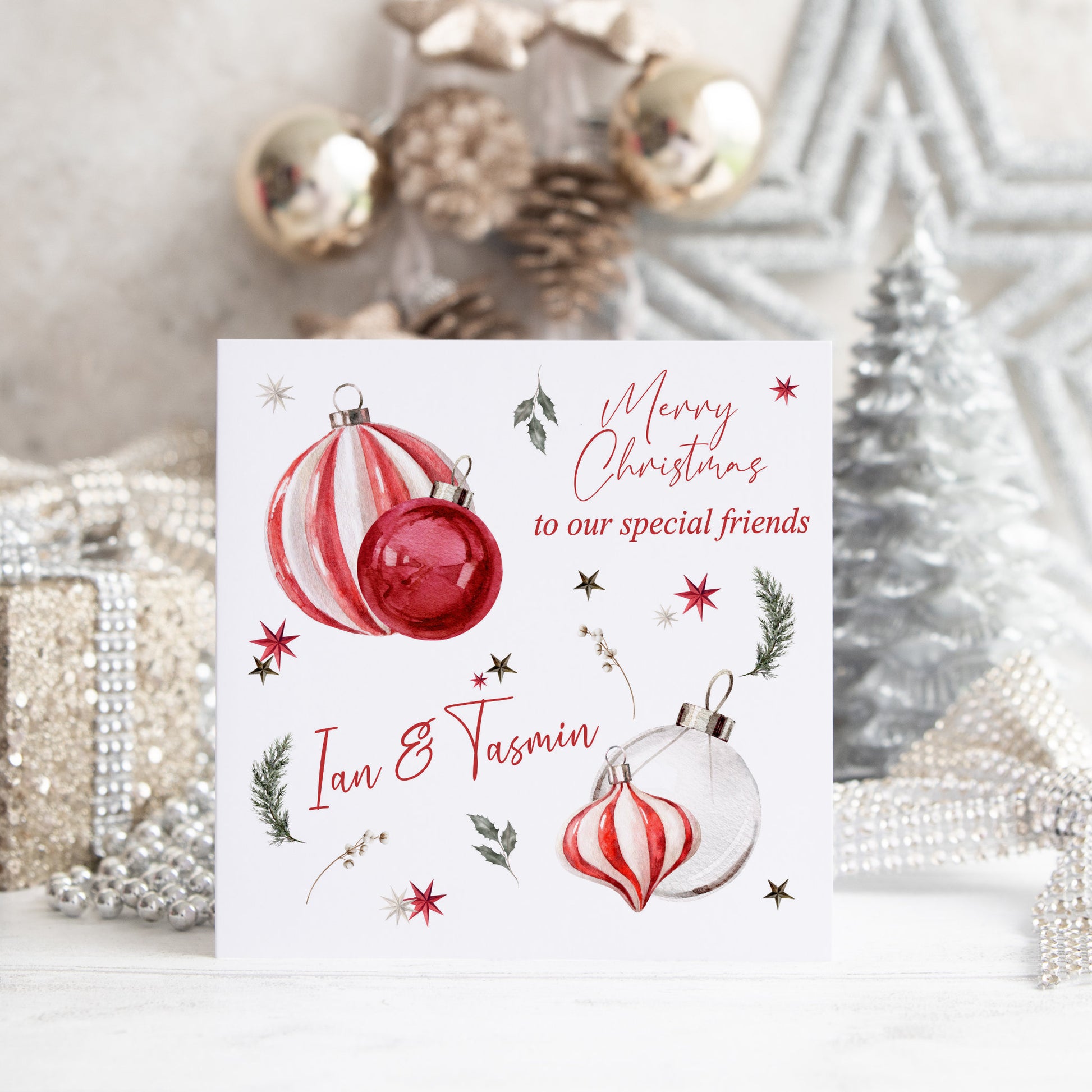 Personalised Christmas Card 'Red Candy Baubles'