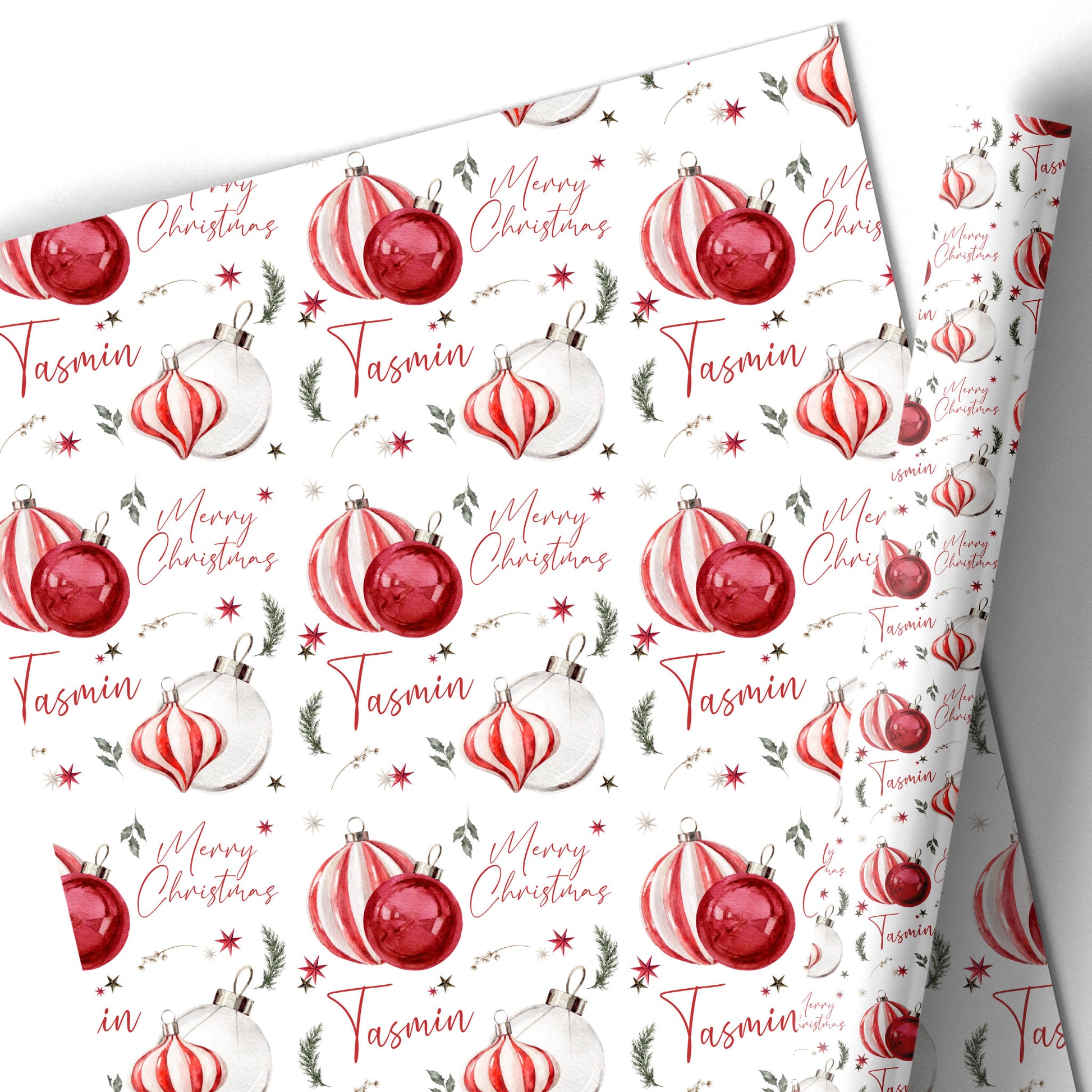 Featuring red stripe christmas baubles design.