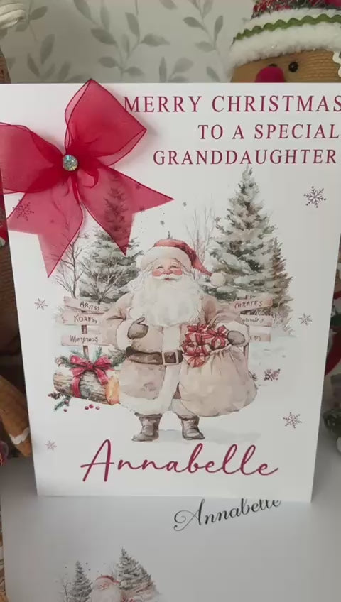Printed on high-quality cardstock with a bright and festive finish, this personalised Santa card is a fun and thoughtful way to send Christmas wishes to your son, daughter, grandchild, niece, or nephew.