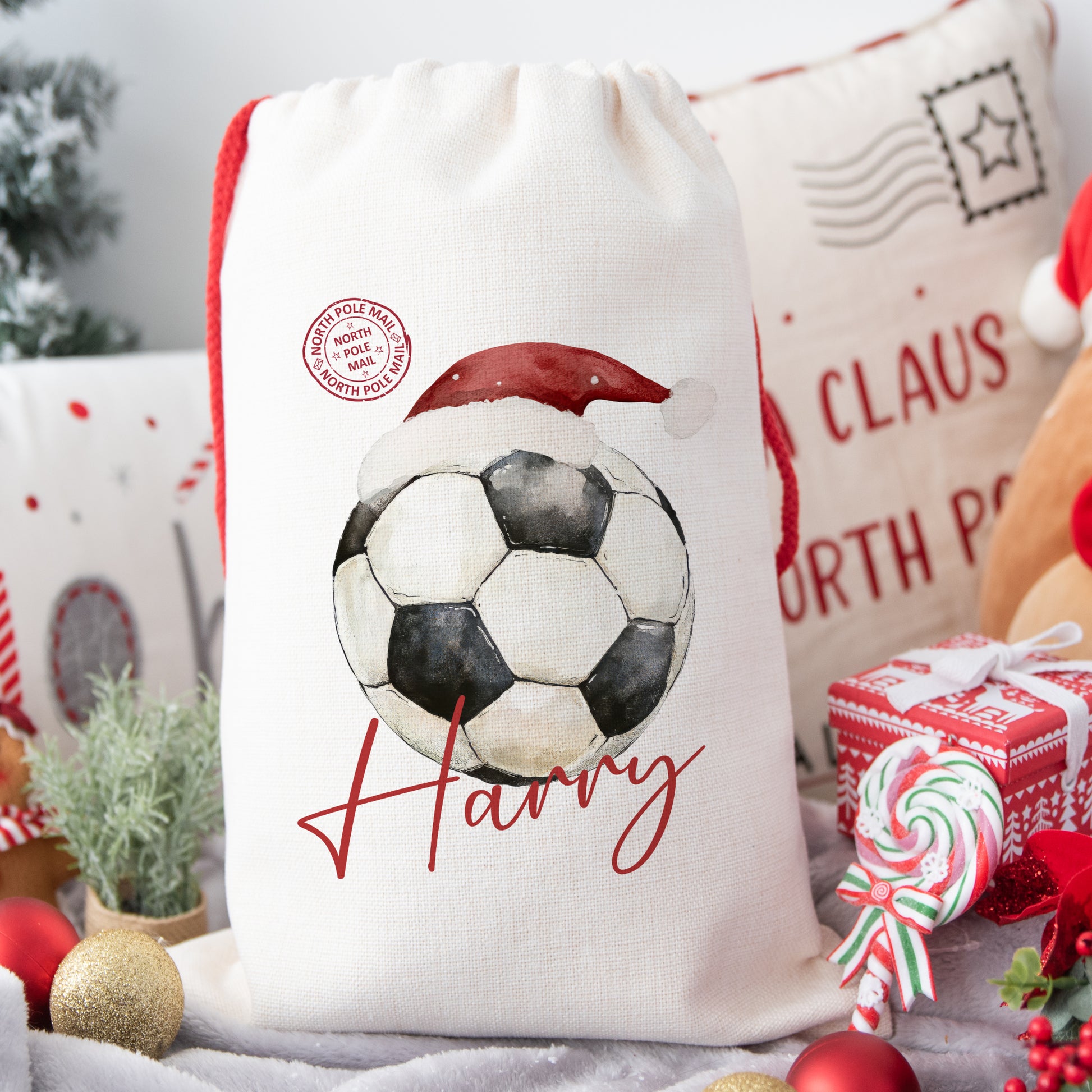 Personalised Christmas Santa Gift Sack – Football Design – Custom Name Christmas Sack