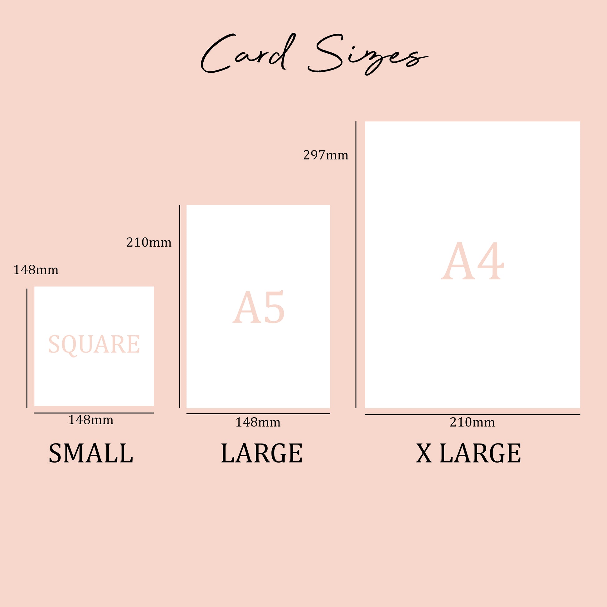- Printed to order on 300gsm lightly textured cardstock with a premium white envelope