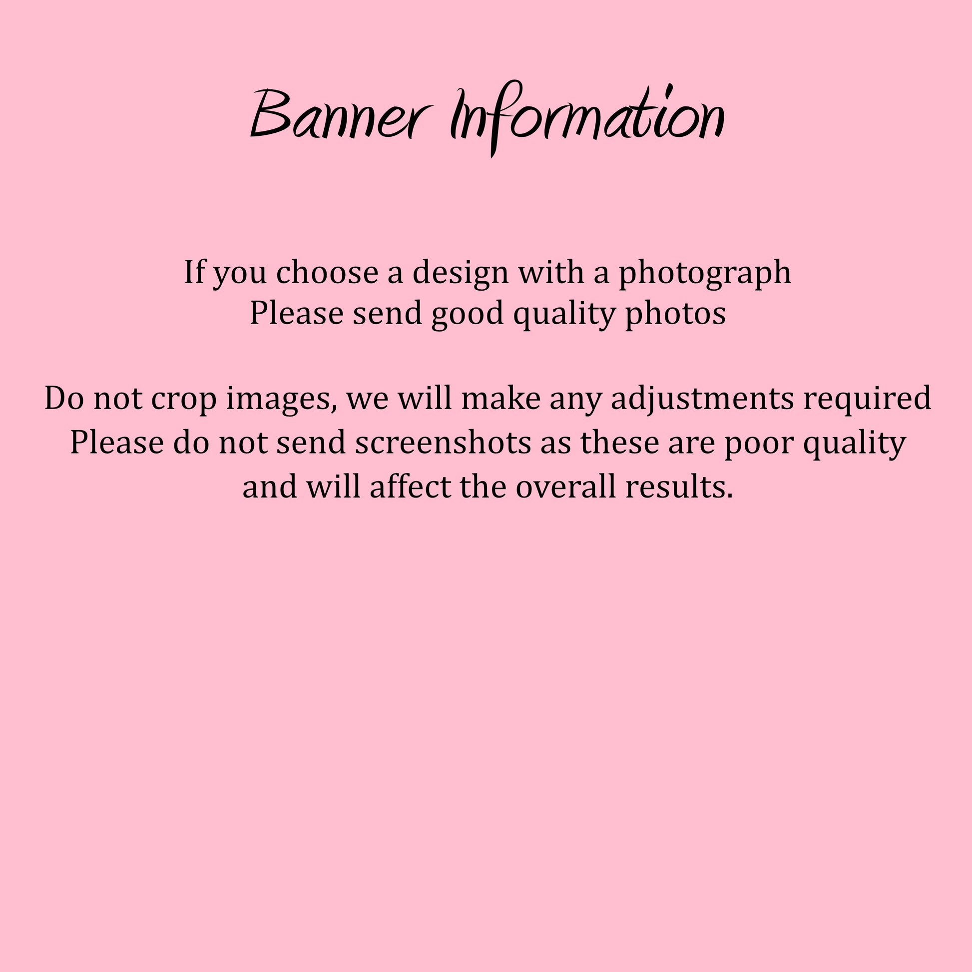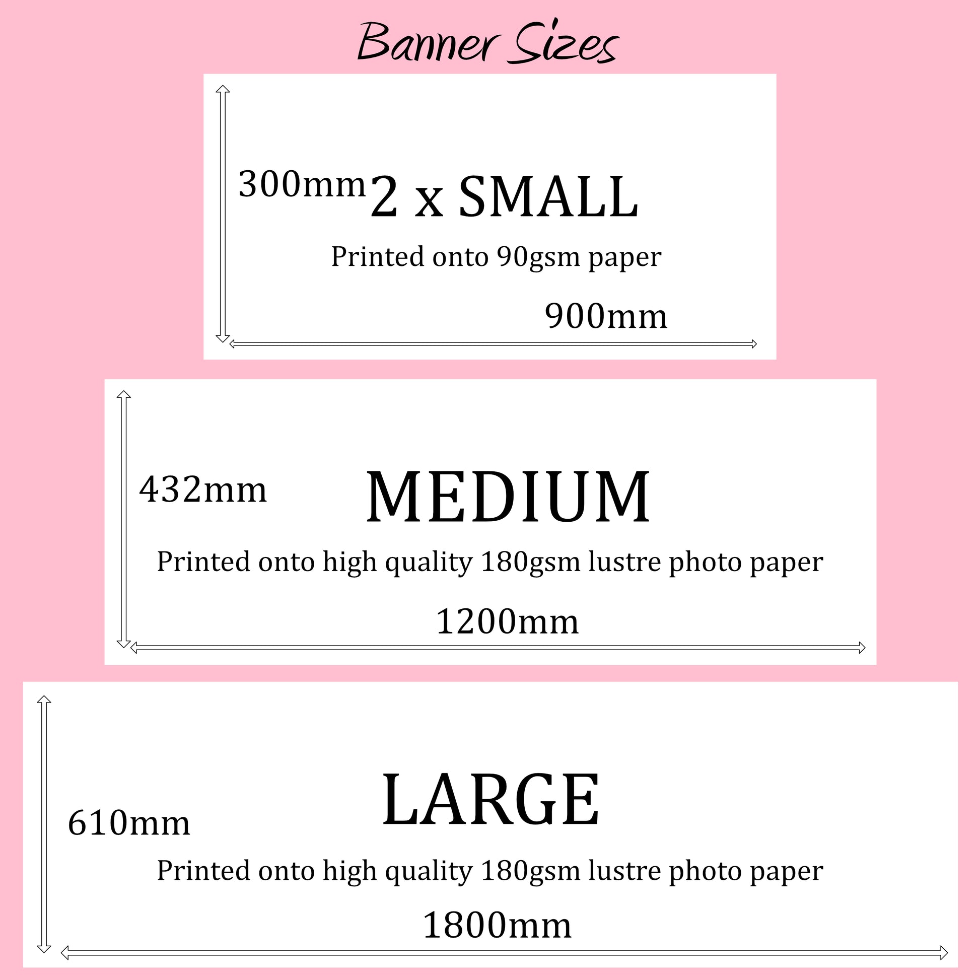 - The medium and large banners are printed onto 180gsm high quality lustre photo paper.