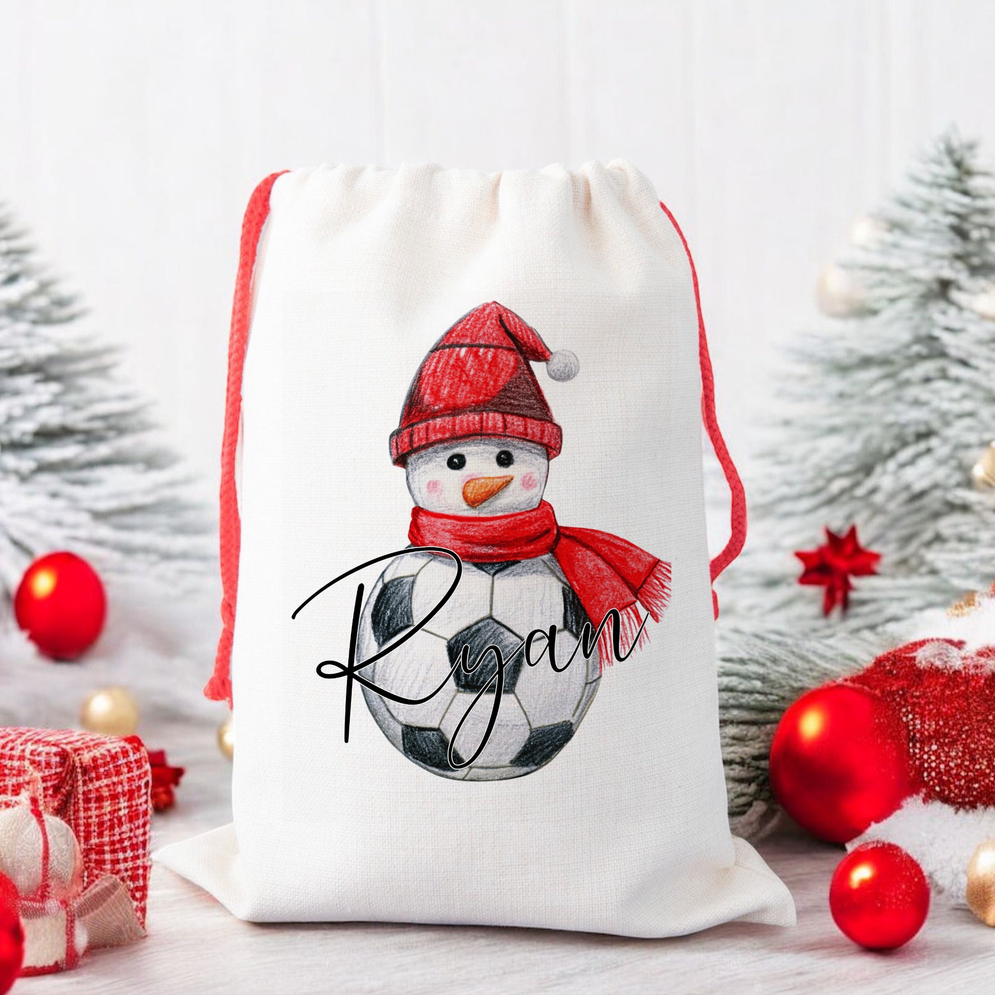 Personalised Santa Sack, Gift Sack for Kids or Adults, Football Snowman