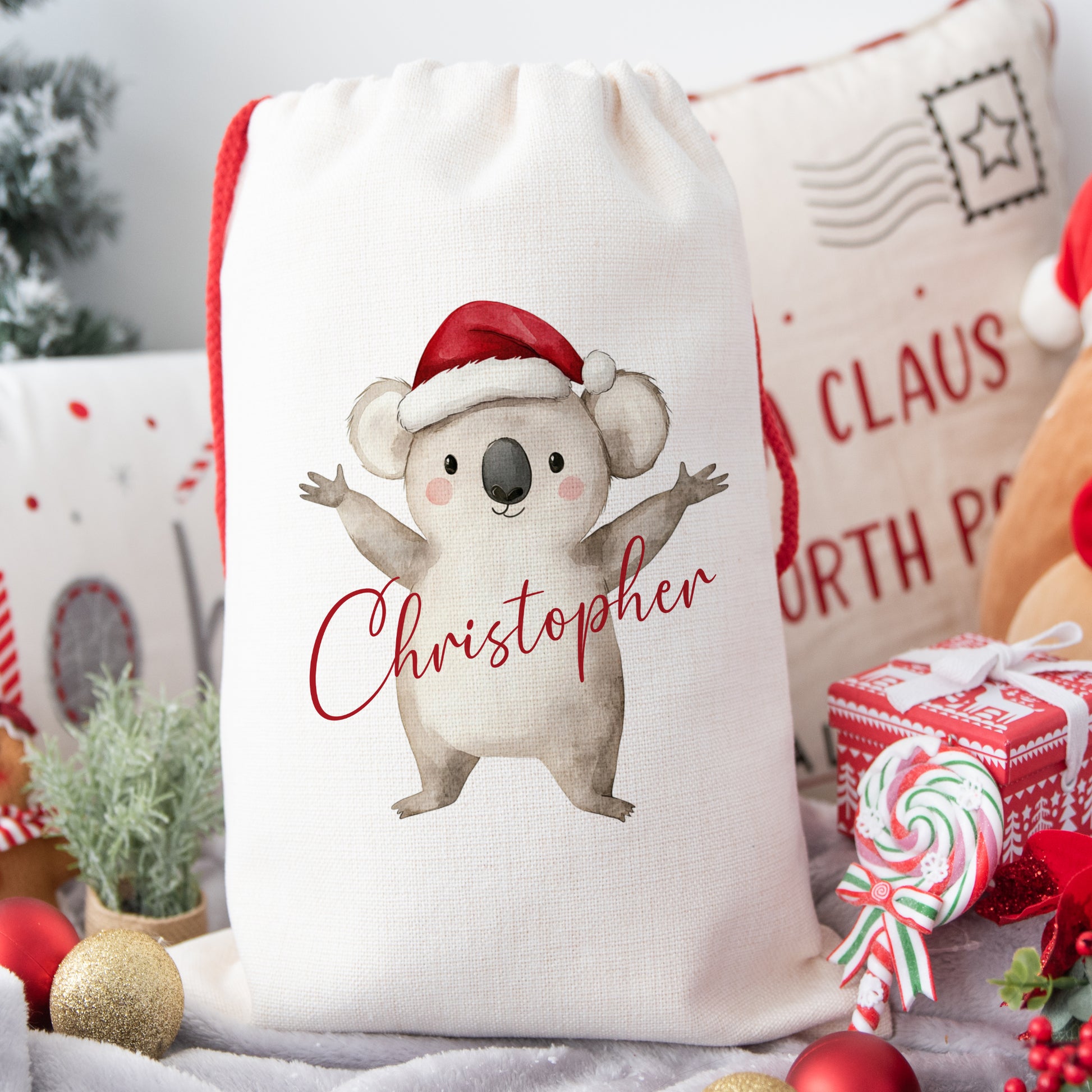 Personalised Santa Sack, Gift Sack for Kids or Adults, Koala Bear