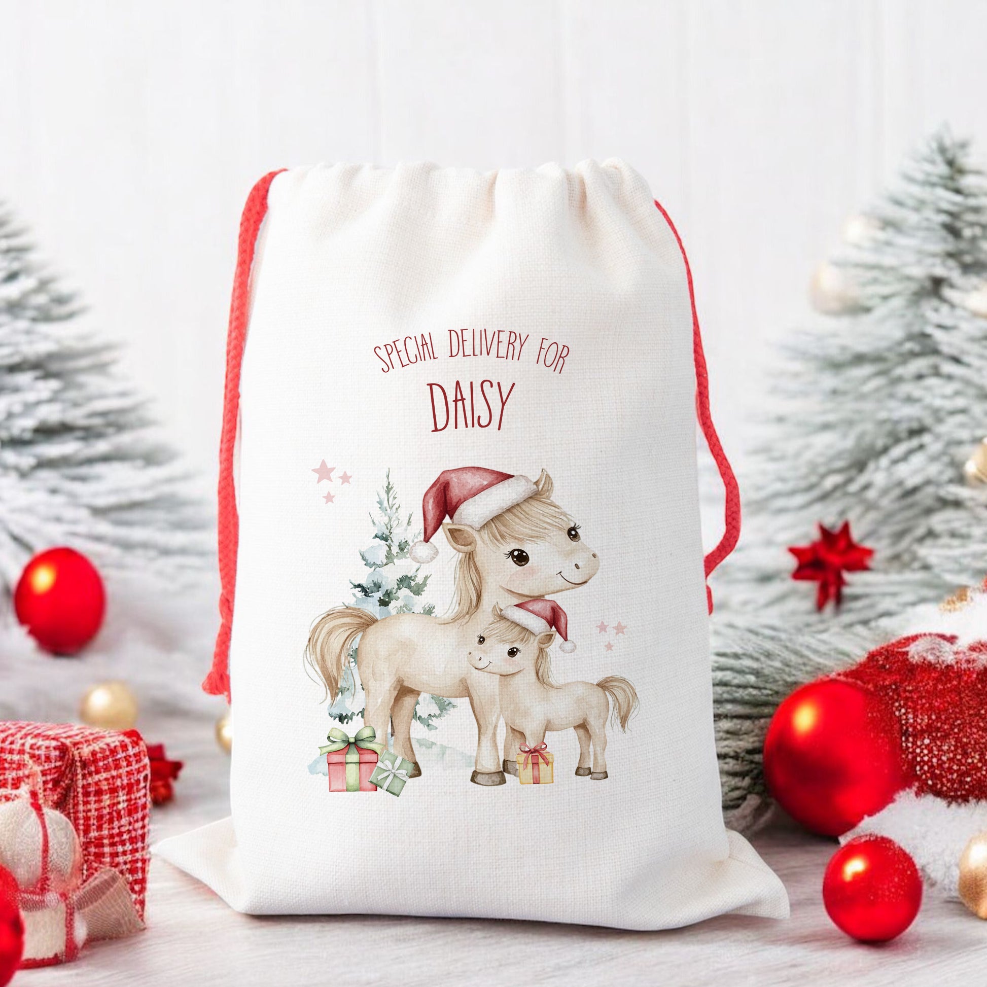 Personalised Santa Sack, Gift Sack for Kids or Adults, Ponies