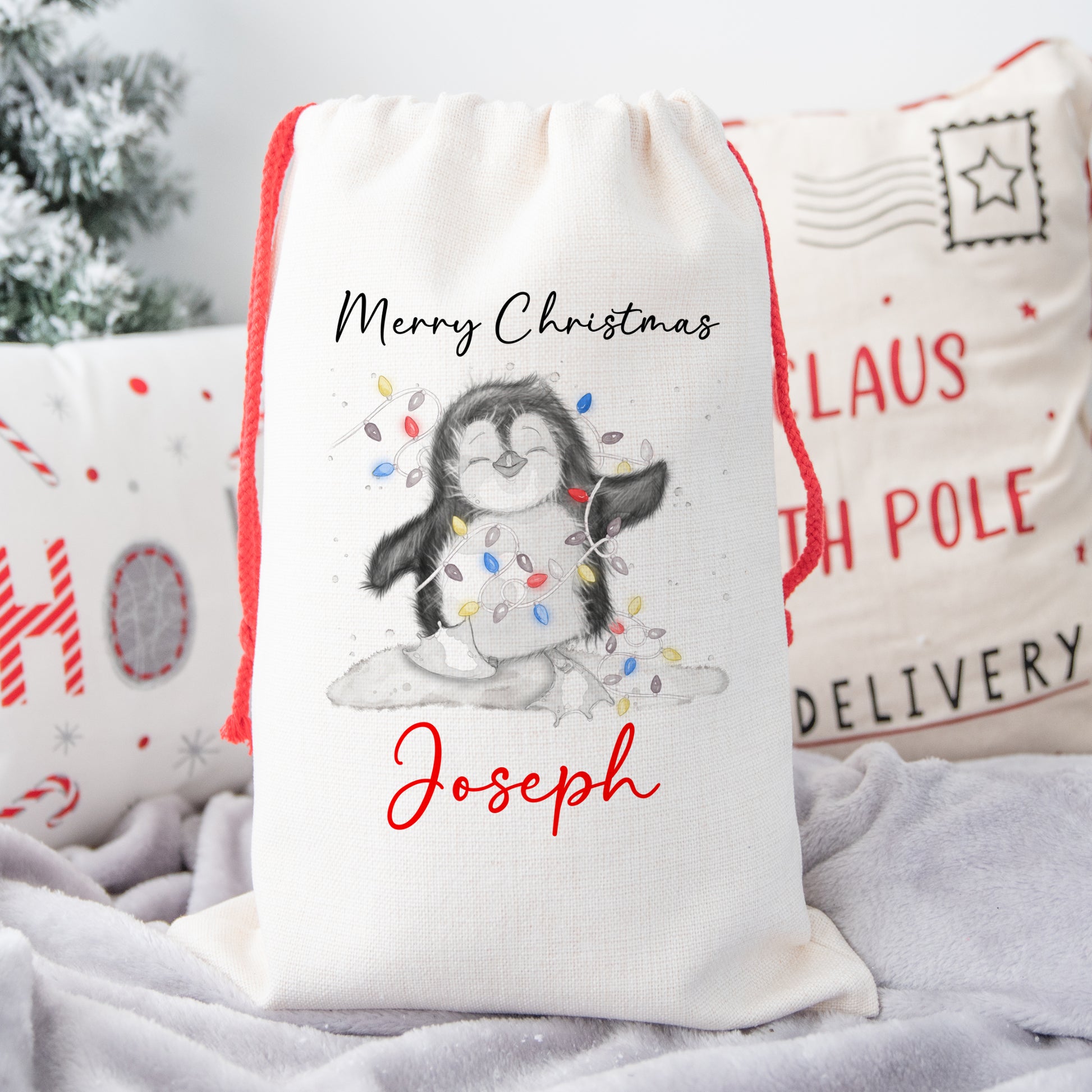 Personalised Santa Sack, Penguin Gift Sack for Kids or Adults