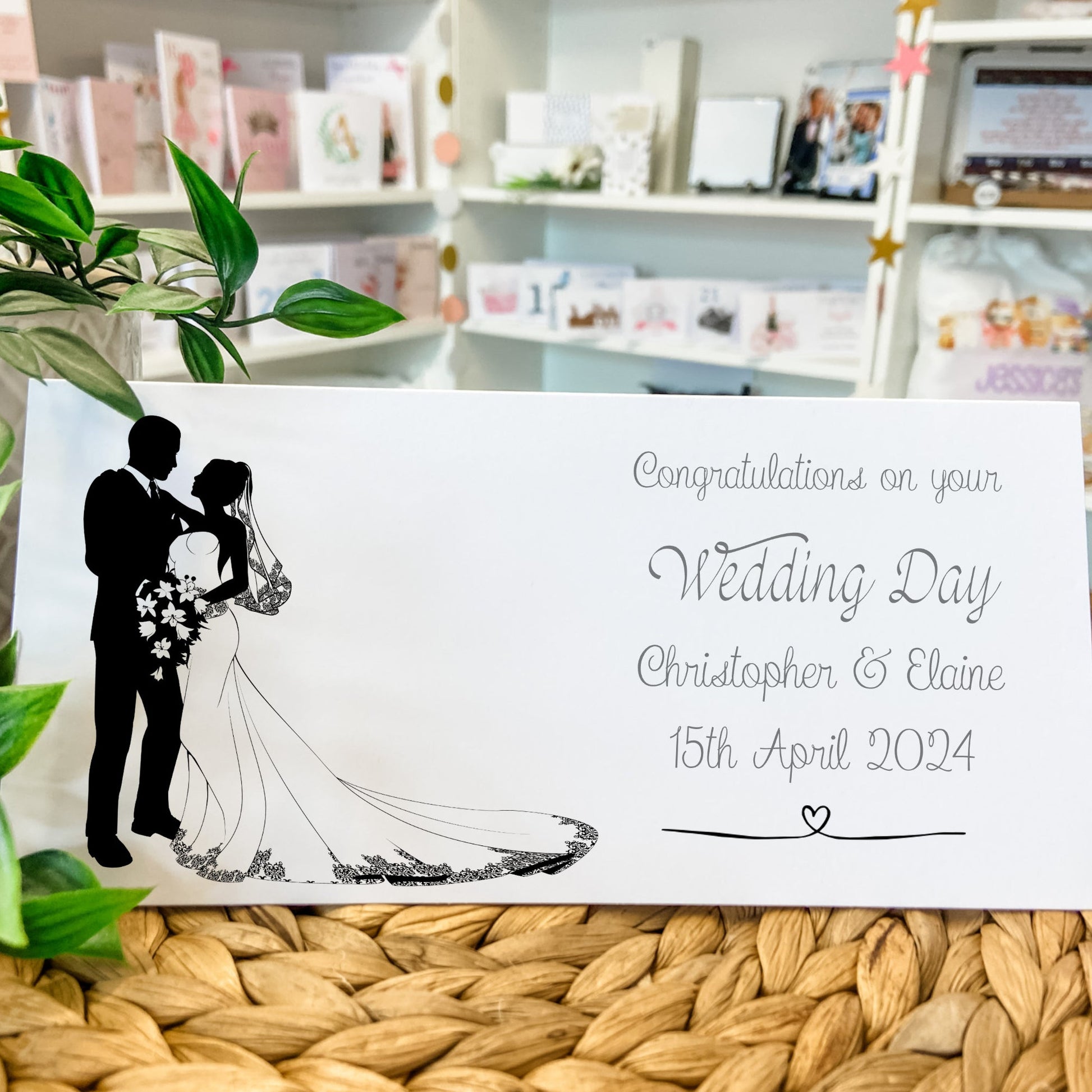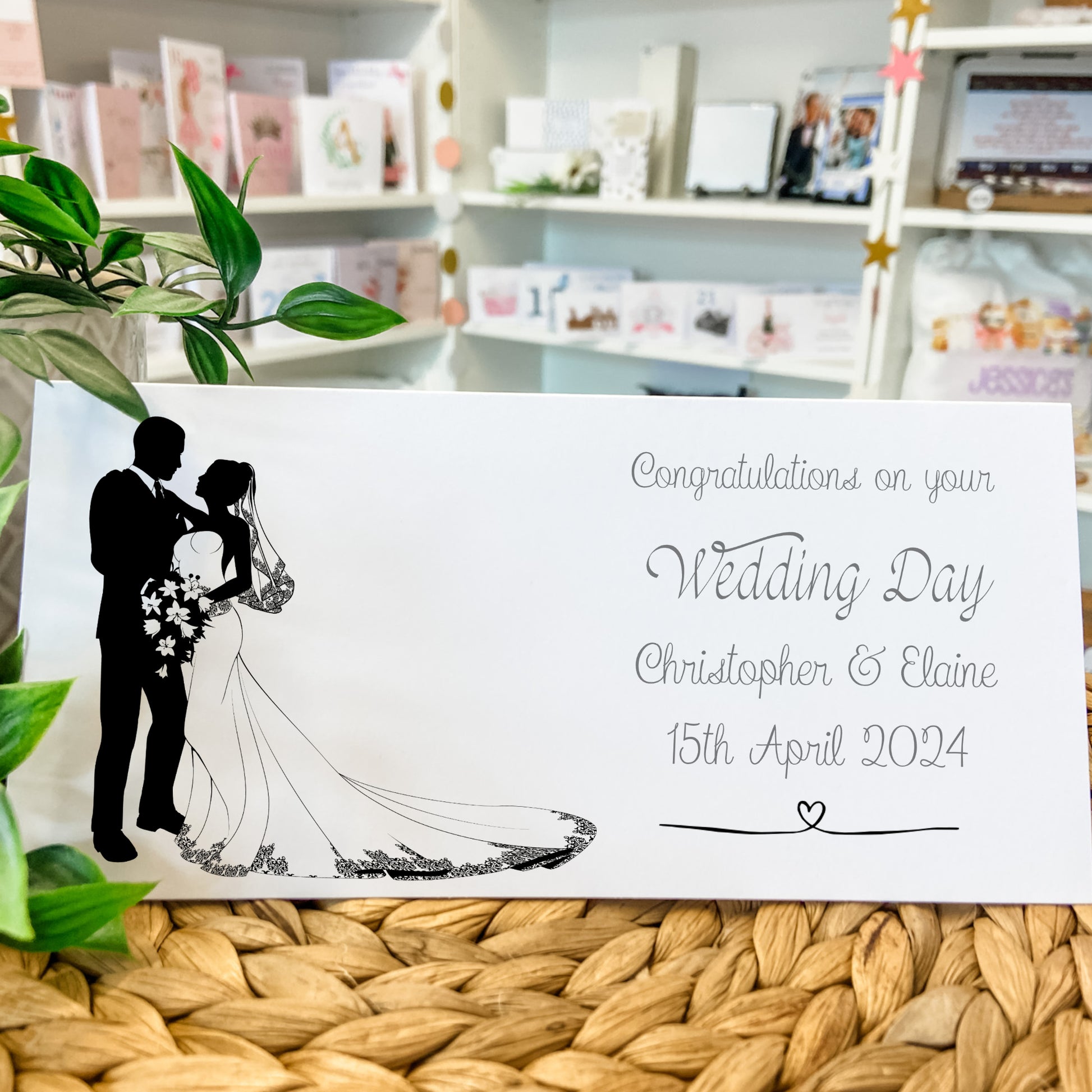 Personalised Wedding Card Money Gift Wallet Vouchers Cash Bride Groom Silhouette